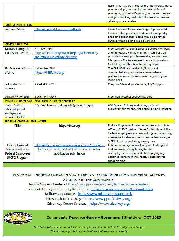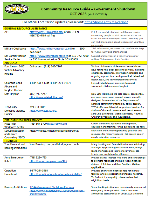 For access to services during the furlough, please utilize our Community Resource Guide Government Shutdown 2025.