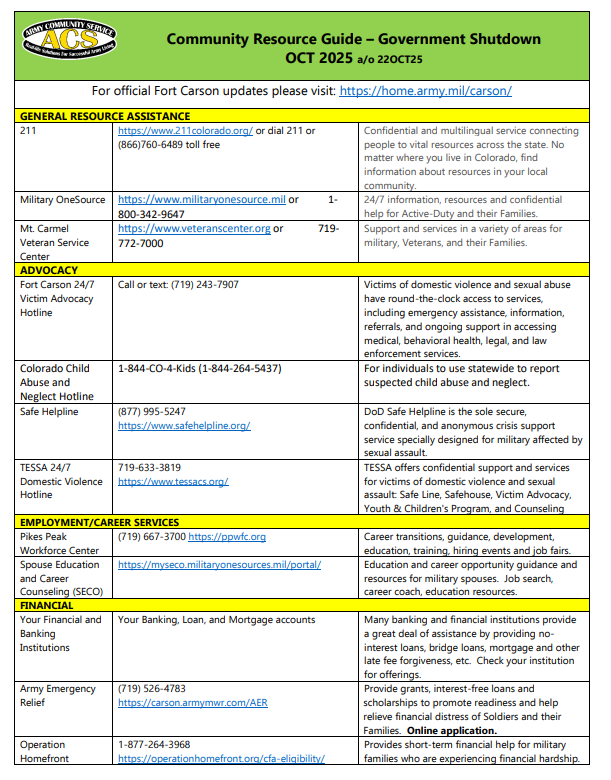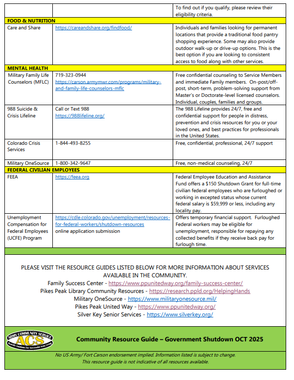 For access to services during the furlough, please utilize our Community Resource Guide Government Shutdown 2025.