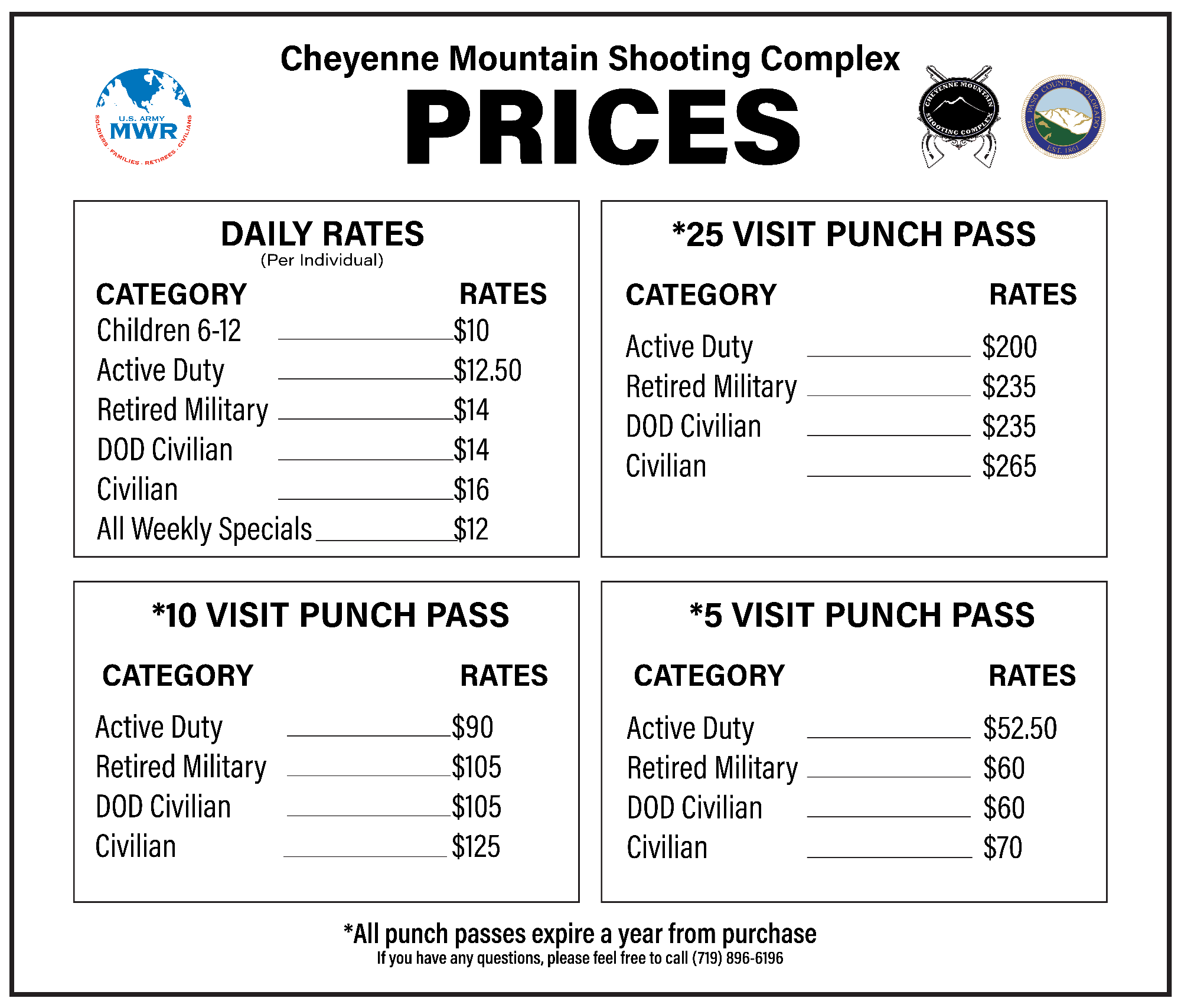 Rifle Rentals: $17 +ammo (ammunition prices vary by caliber)