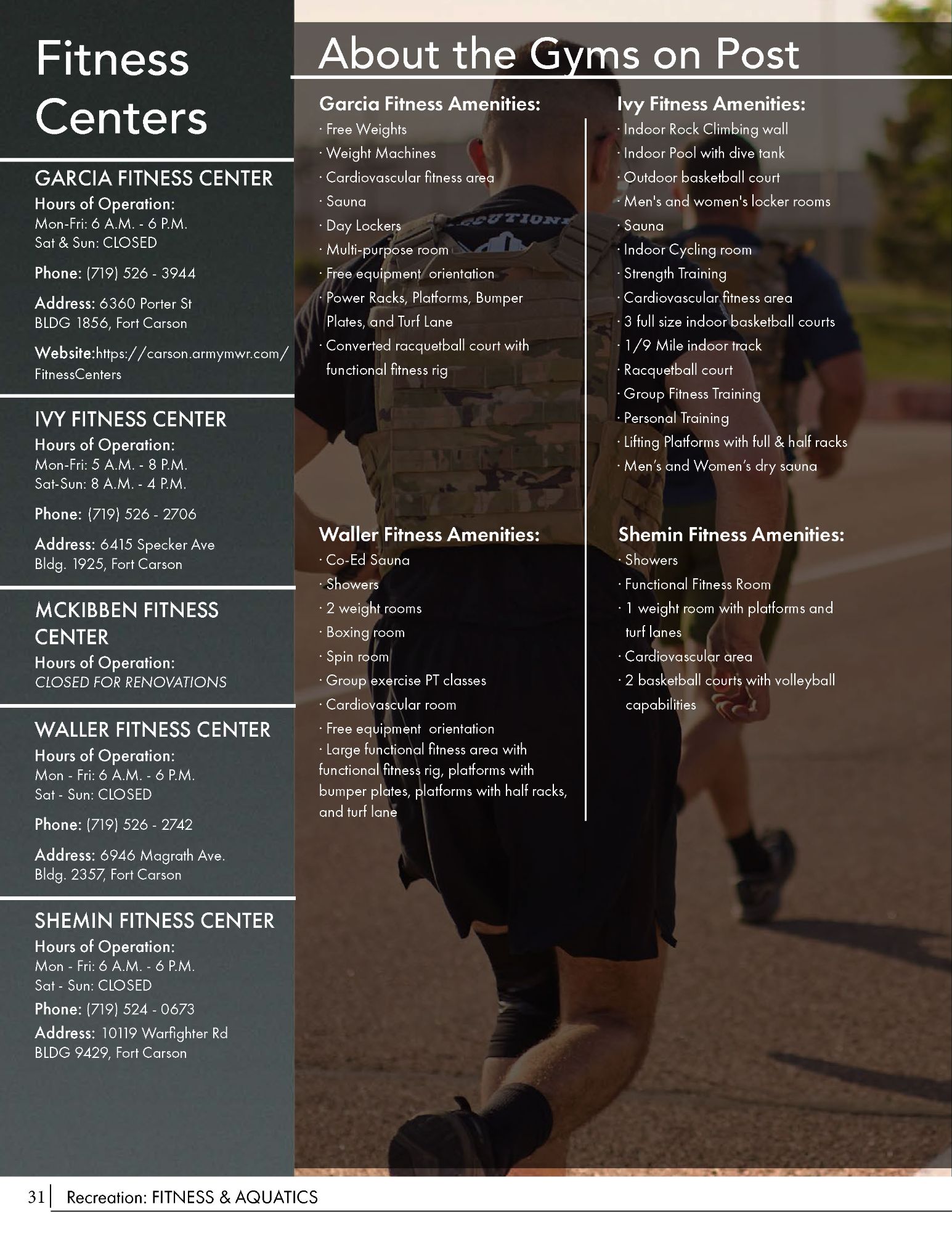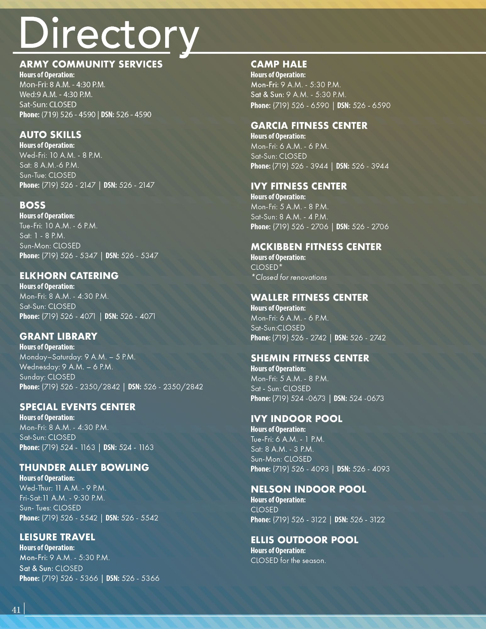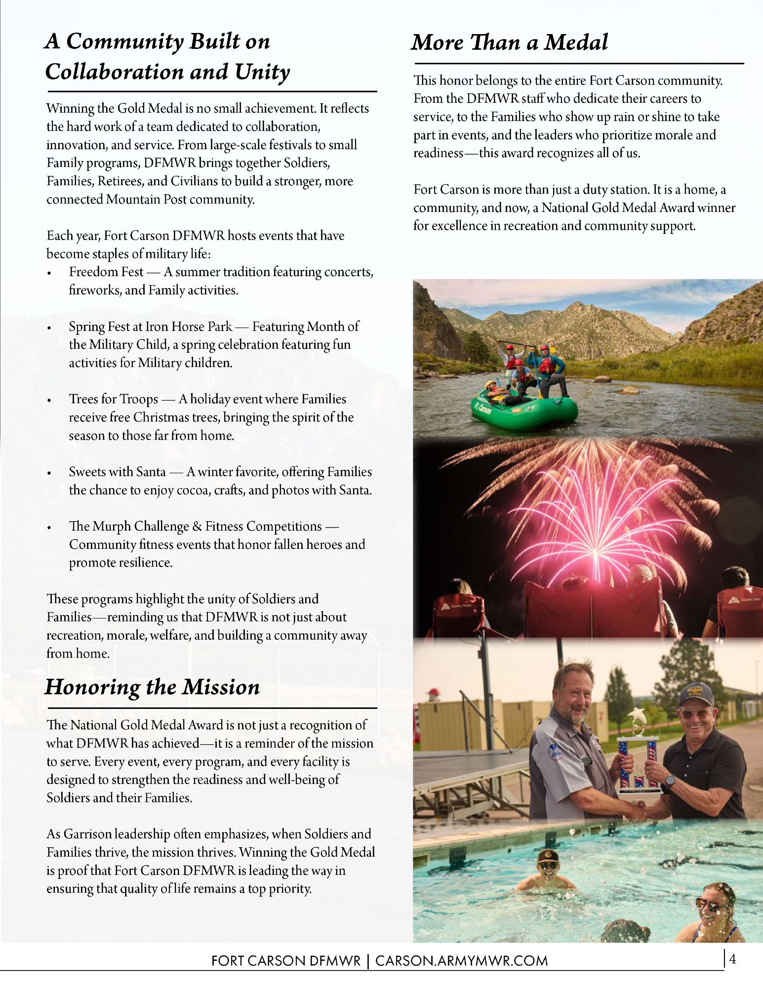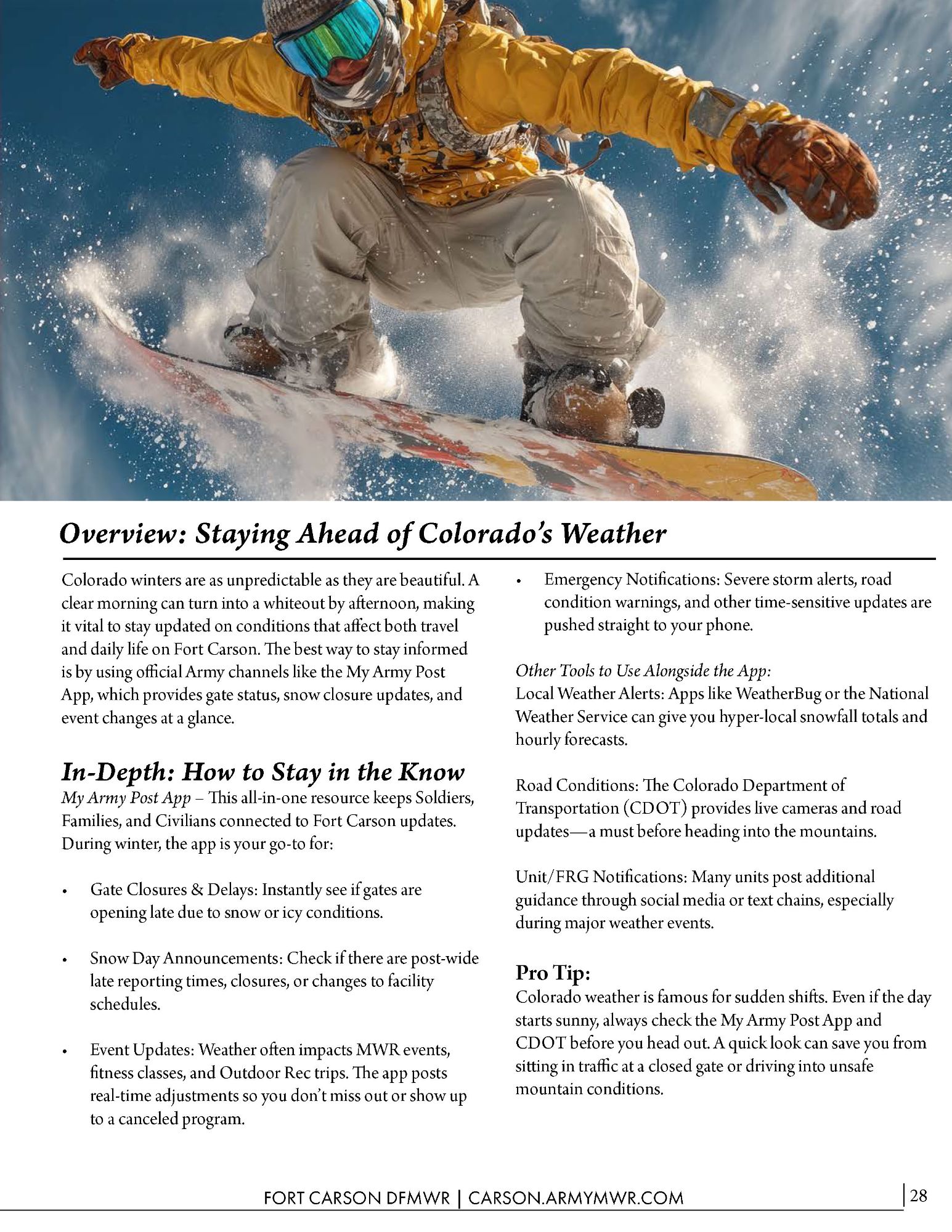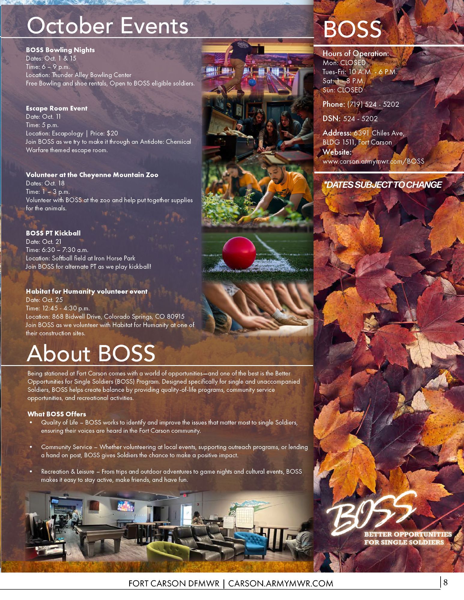 Updated quarterly, Mountain Post Magazine features a comprehensive summary of all community programs, events, & leisure opportunities Fort Carson MWR has to offer – including a complete directory of facilities and a quarterly calendar of upcoming events!