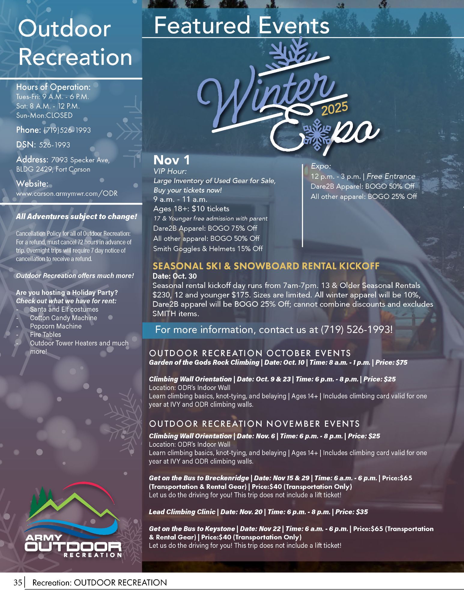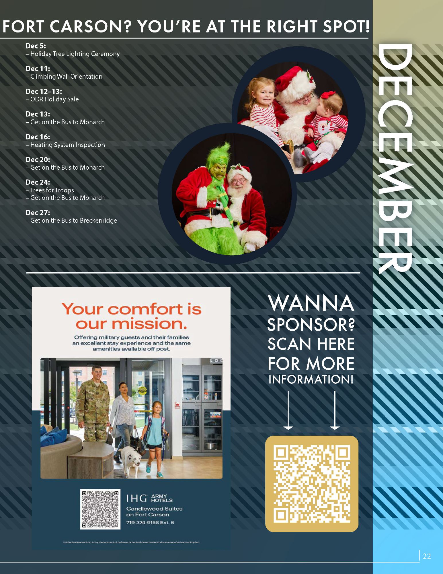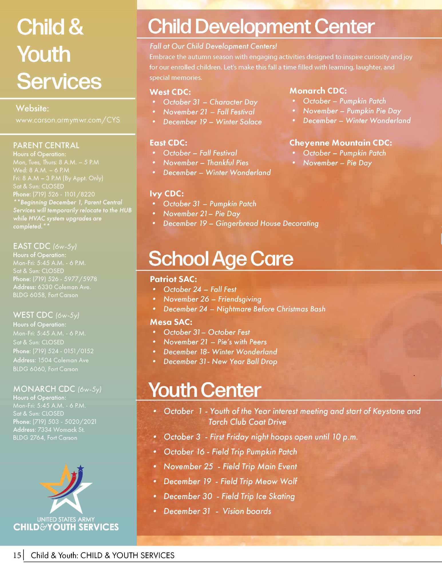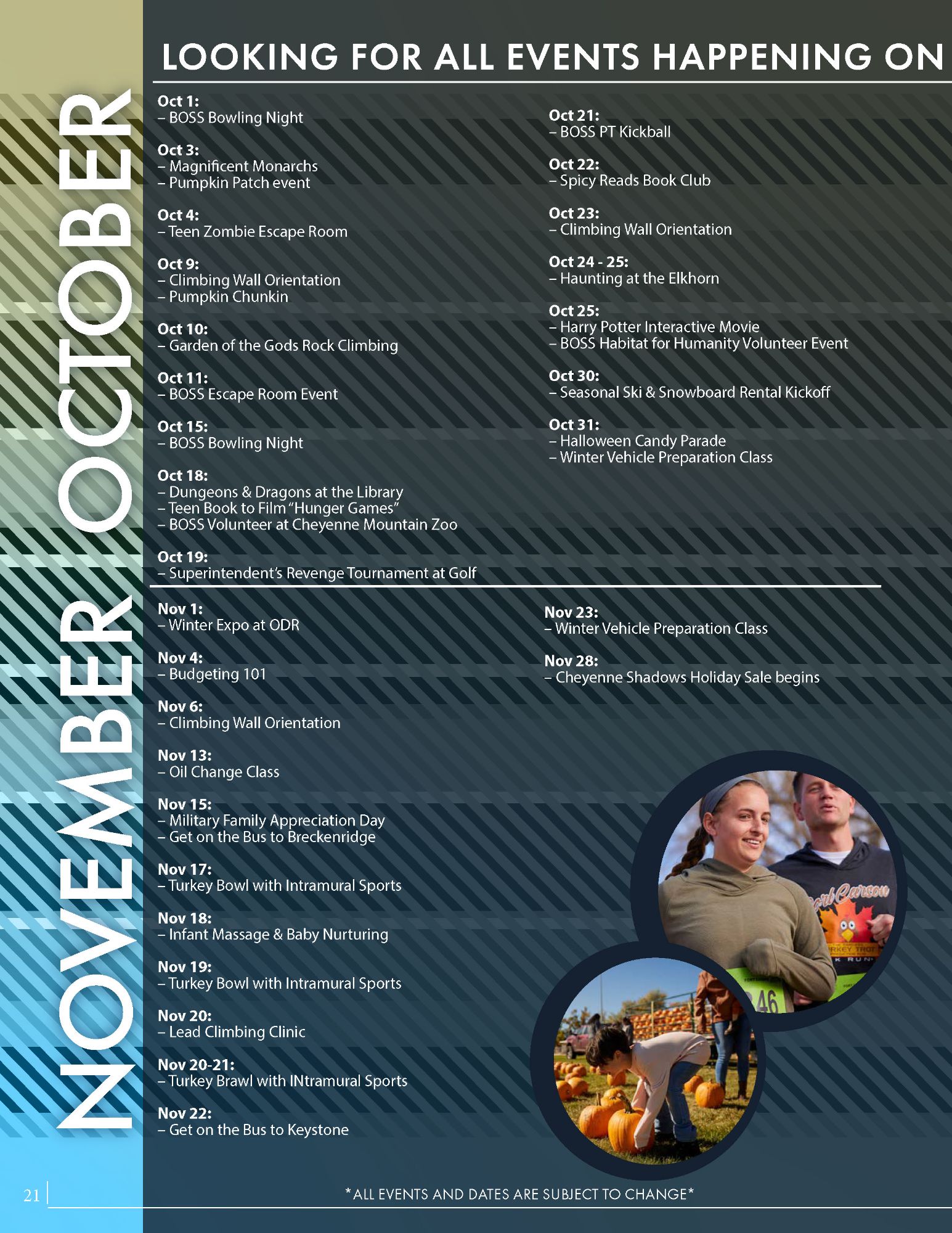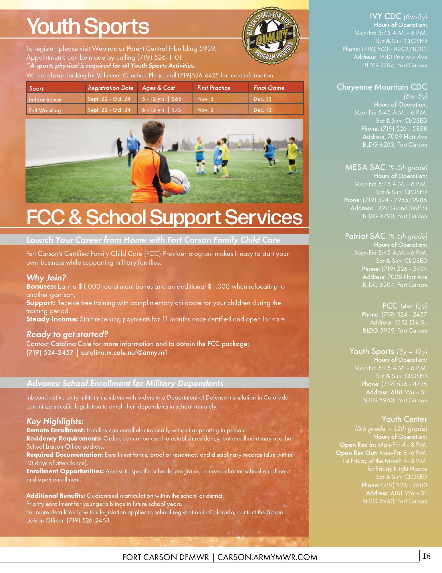 Updated quarterly, Mountain Post Magazine features a comprehensive summary of all community programs, events, & leisure opportunities Fort Carson MWR has to offer – including a complete directory of facilities and a quarterly calendar of upcoming events!