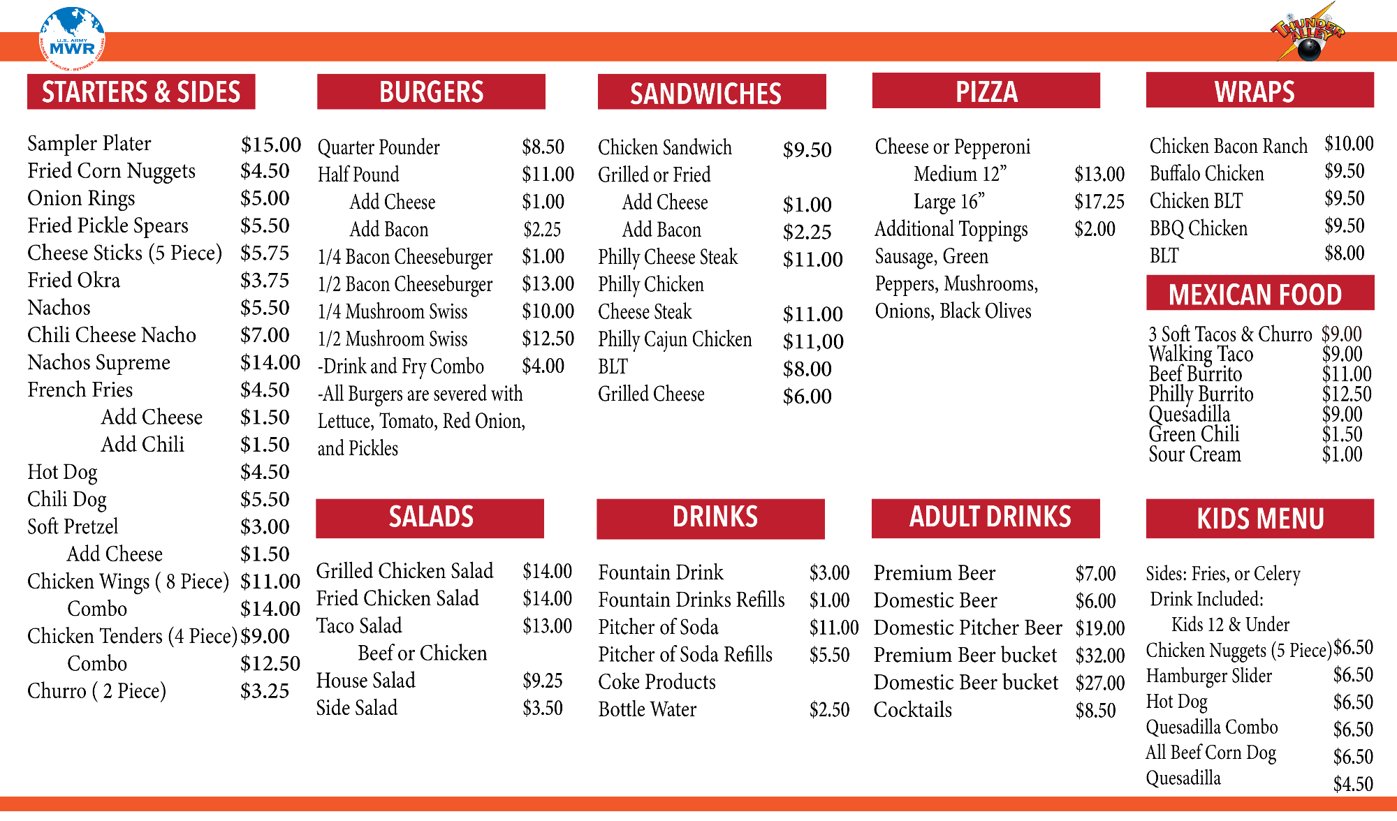Grab a bite while bowling or stop by for lunch! The Strike Zone is a full service snack bar and grill located inside Fort Carson's Thunder Alley Bowling Center, ideal for special events or work functions. All-day service includes full breakfasts for early birds and continues until closing with burgers, sandwiches, pizza and other favorites!